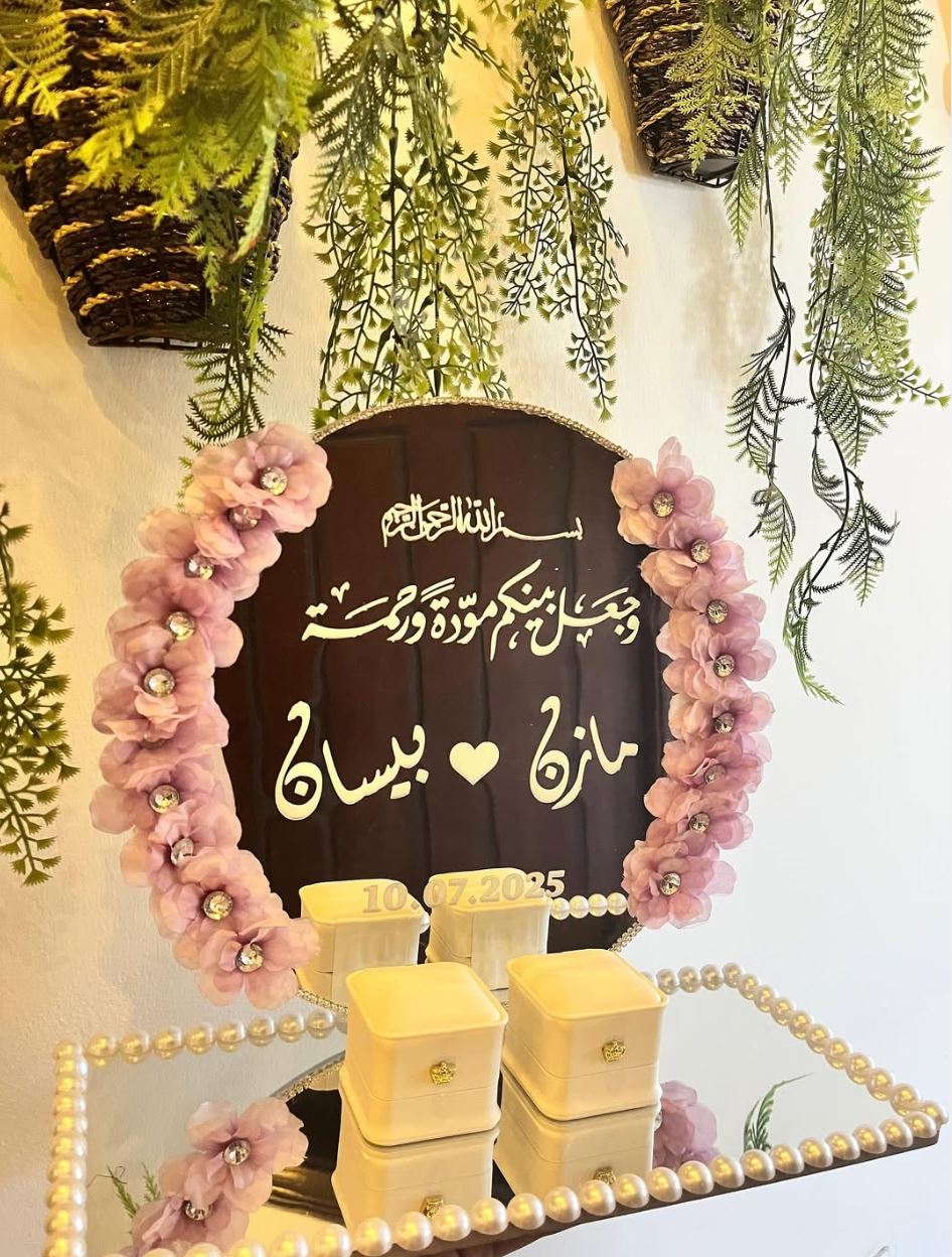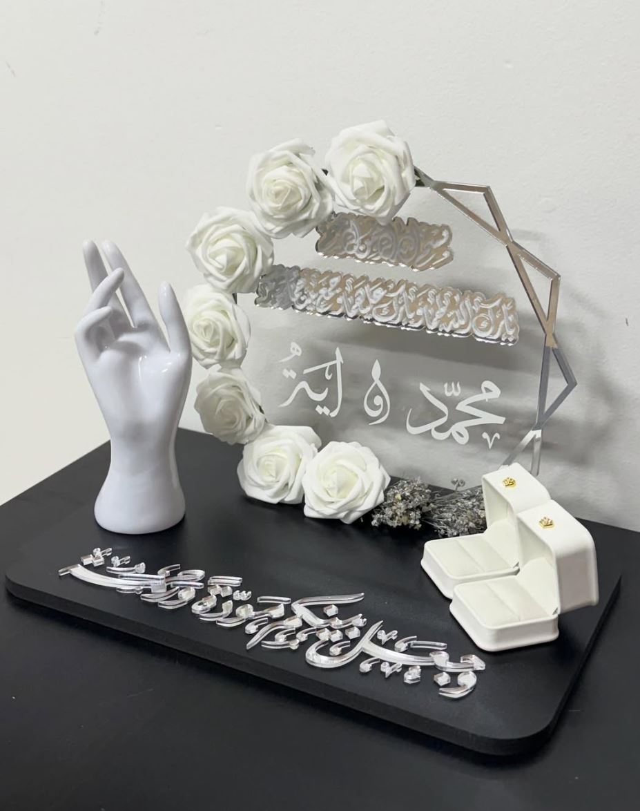 Celebrate your love story with timeless elegance. Our Golden Elegance Arabic Wedding Engagement Tray is a stunning mirrored platter accented with golden floral acrylic detailing and custom Arabic calligraphy. Designed for engagements, weddings,...