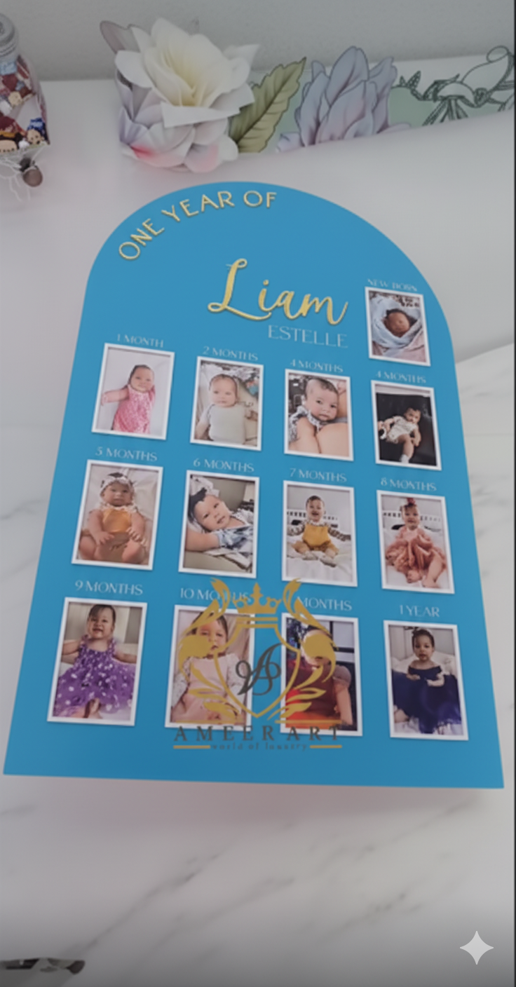 Celebrate your little one’s journey from newborn to one year with our One Year of Love Milestone Board! Each board is custom crafted to feature your baby’s photos from birth through every month,...